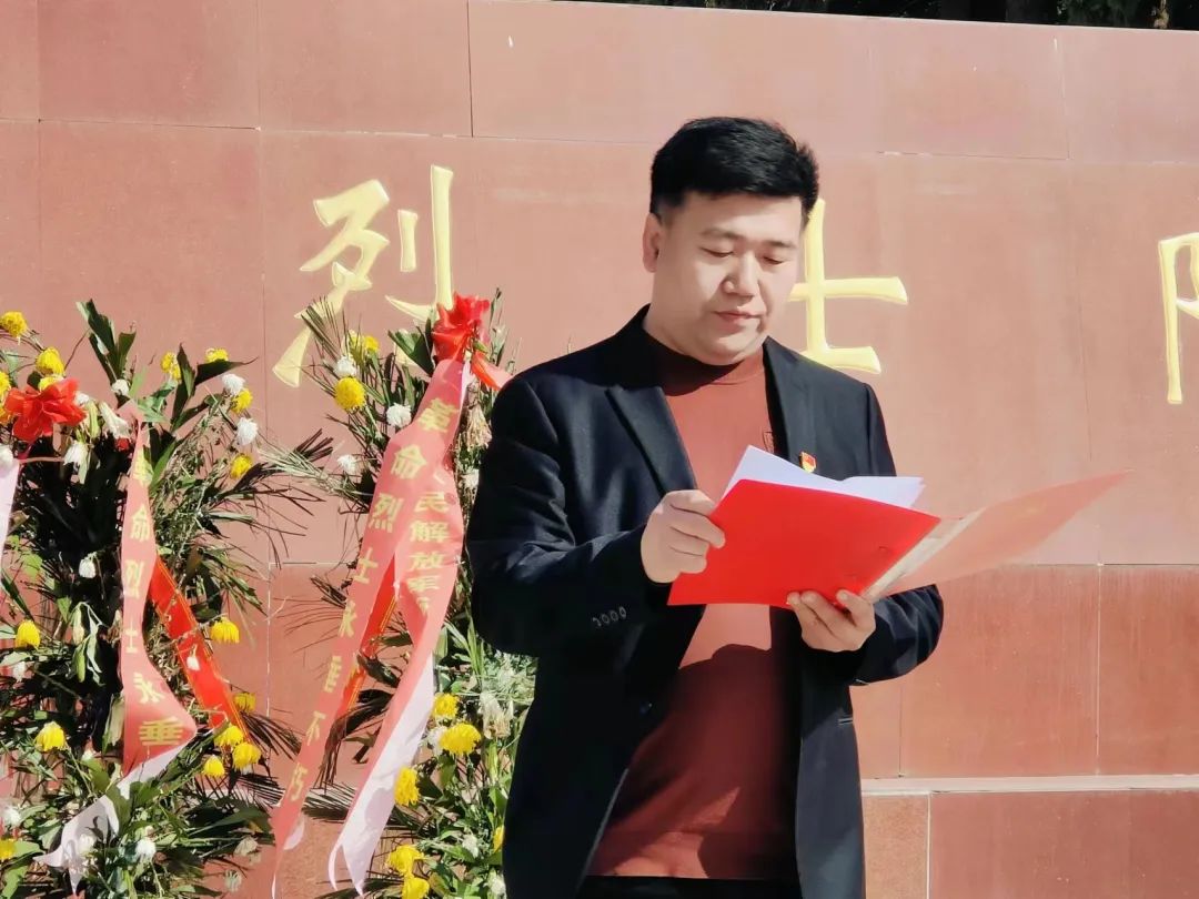 在党总支书记李建新讲话中,他特别提到要学习先烈们坚定的信仰和无私奉献的精神,要将其融入到日常工作、学习、生活中去,接力中华民族伟大复兴的中国梦。