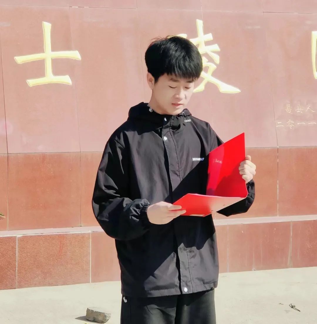 学生代表郑宇航发言,他的话语中透露出对祖国的无限热爱和对先烈精神的坚定传承,体现了实中青年一代的爱国心声和对祖国未来发展的美好祝愿。