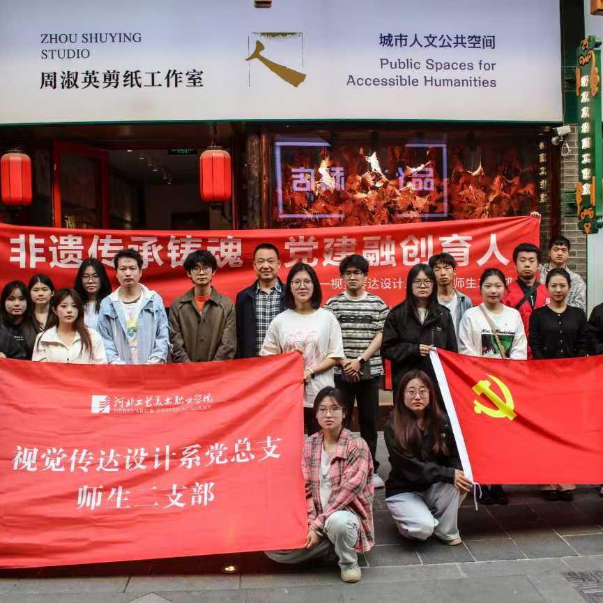 2025年4月23日上午,视觉传达设计系党总支师生二支部的师生们,在系党总支副书记李英奎、支部书记于海鹏以及党员教师张子梦、张彭云、朱圆的带领下,前往周淑英剪纸工作室。在党建引领下,文化传承与创新不断焕发新活力。第四代传承人周泽云以“刀刻时光,纸传匠心”为引,为师生们揭开国家级非遗蔚县剪纸的技艺奥秘,让大家深切感受到与党建精神同频共振的匠人力量,体悟坚守初心、矢志创新的深刻内涵。